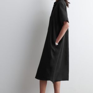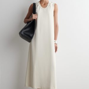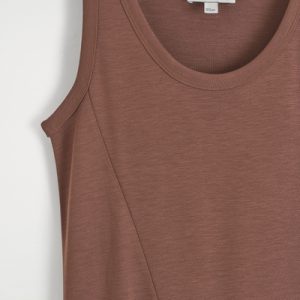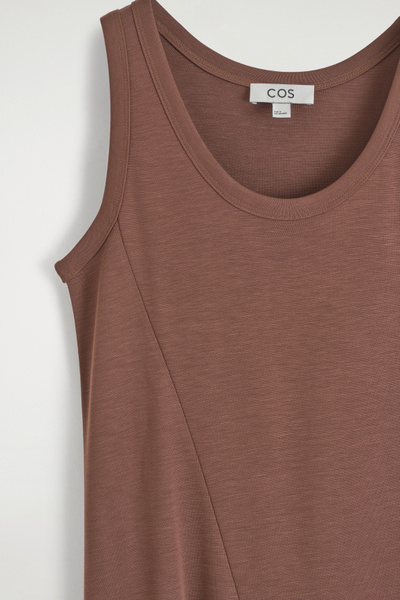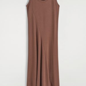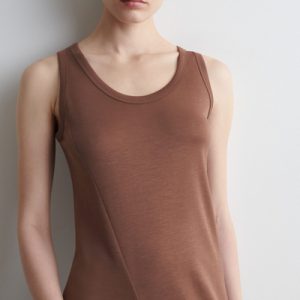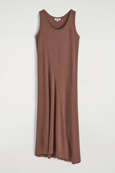 Effortless silhouettes and lightweight fabrics are pillars of the summer wardrobe. Offered in a rich chocolate hue, this midi dress is made from interlock TENCEL™ Lyocell-blend jersey with a scooped neckline and angled seams that create an asymmetric drape.