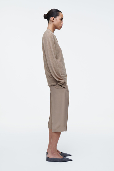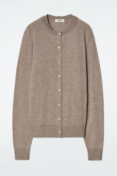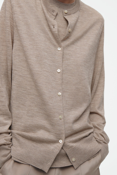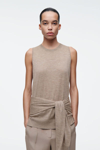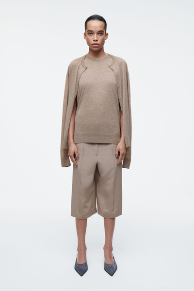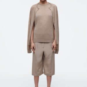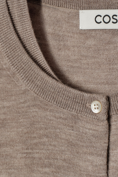 The COS SS25 runway collection builds on the house codes of lasting design and exceptional craftsmanship. Offering an elevated take on layering, this modern piece comprises a tank and cardigan, bound together by our signature hanger loop. It’s knitted from premium ultra-fine cashmere that’s luxuriously soft to the touch and finished with premium mother-of-pearl buttons. Style it with the long sleeves tied around the waist.