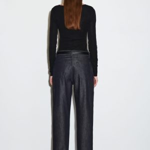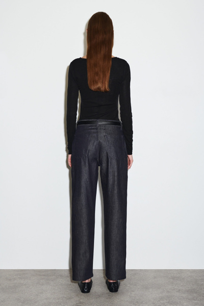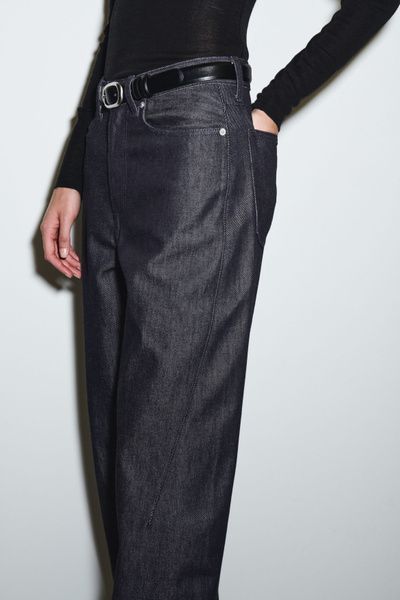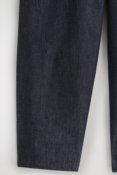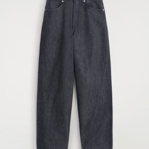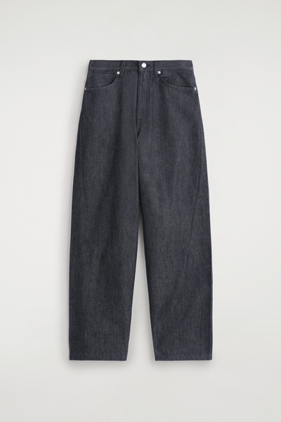 These barrel-leg pants reframe denim codes through a modern lens. Offered in a deep-indigo wash, they’re made from organic and recycled cotton and shaped with wrap-over seams for a sculptural silhouette and full-length hems that pool at the shoe.