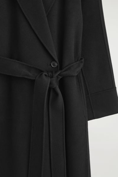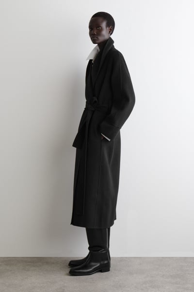 Introducing The Capsule Wardrobe: a seasonal evolution of permanent COS icons. This refined coat channels our pillars of modern silhouettes and elevated design details. Crafted from double-faced RWS wool, it’s cut in a relaxed wrap silhouette and features shawl lapels, a double-breasted close and a tonal belt to define the waist.