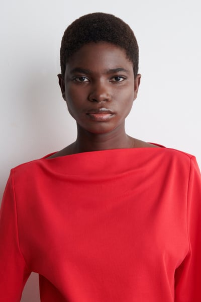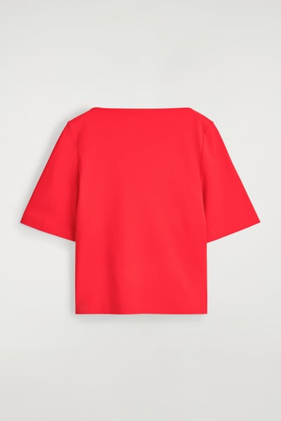 Modern silhouettes and premium fabrics are pillars of the COS design language. Crafted from 230gsm cotton-jersey, this red T-shirt features a boat neckline, fluid short sleeves and shaped seams that subtly define the waist.