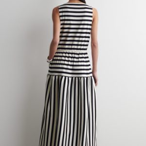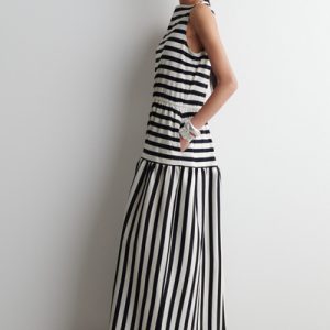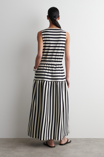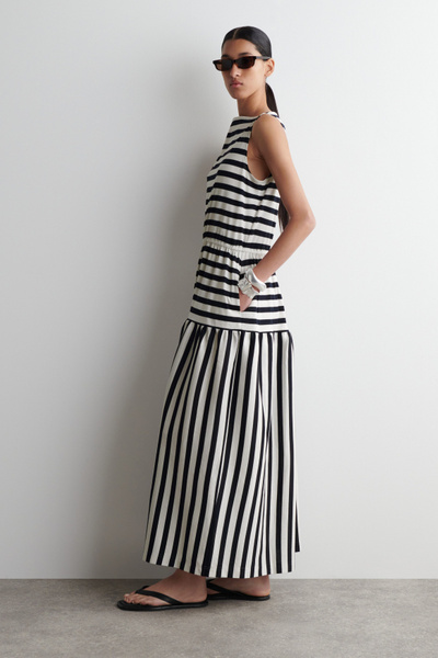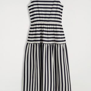 The shift in seasons calls for effortless pieces like this midi dress. Made from naturally breathable cotton, it’s designed with a boat neckline, a gathered waist, and a tiered skirt.