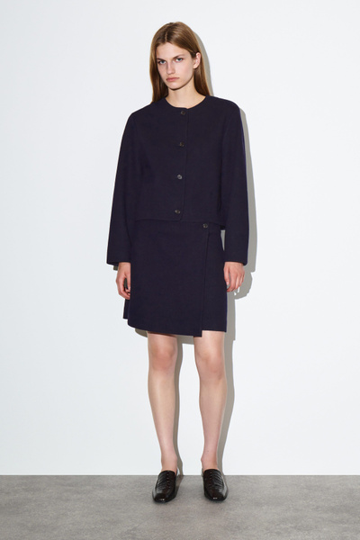 This refined cardigan is a modern expression of ’90s minimalism. Perfect for layering, it’s crafted from a boiled merino wool blend and shaped in a relaxed silhouette with subtle pockets at either side. Style it as a co-ord with the matching skirt.
