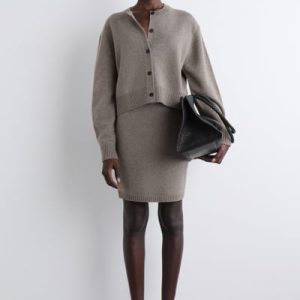This refined cardigan is a modern expression of ’90s minimalism. Perfect for layering, it’s crafted from a boiled merino wool blend and shaped in a relaxed silhouette with subtle pockets at either side. Style it as a co-ord with the matching skirt.