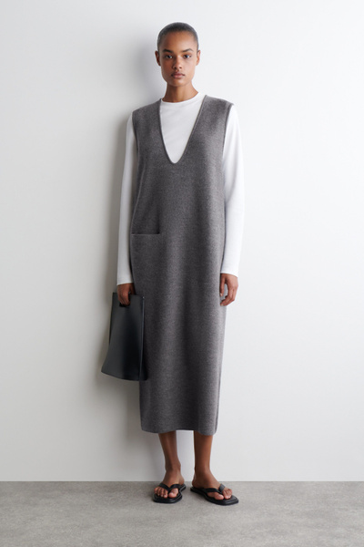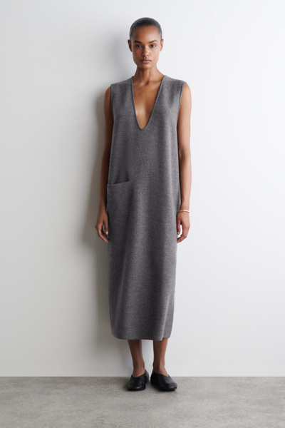 Channeling a modern refinement, this dress is crafted from merino wool that’s boiled for warmth and longevity. It’s cut in a classic shape with a plunging neckline and will look as striking styled alone as it will layered over a T-shirt.