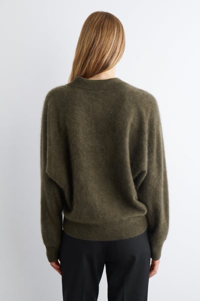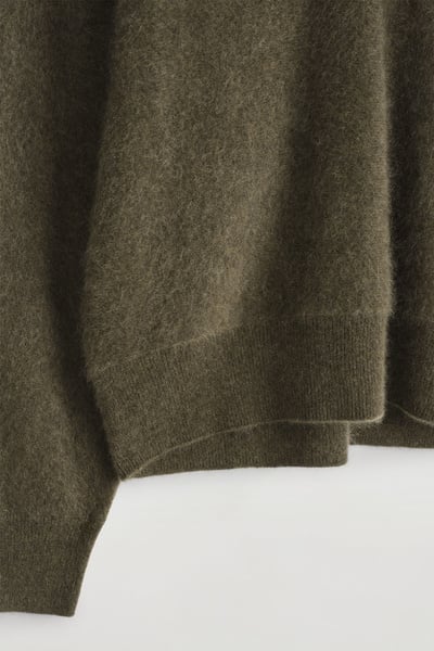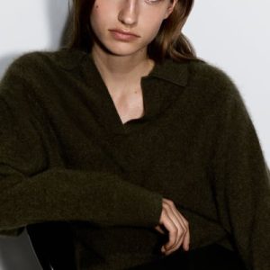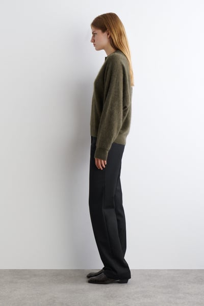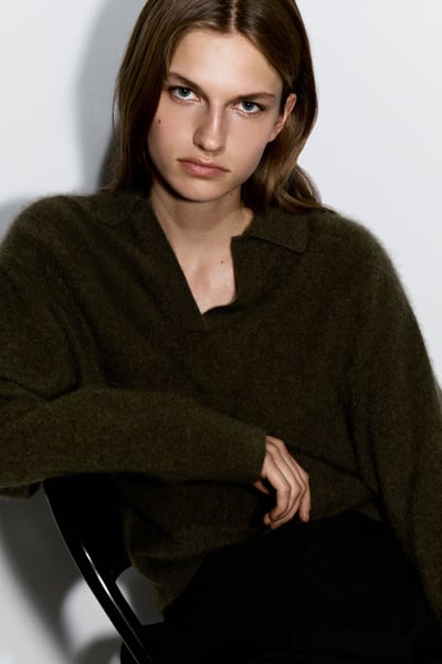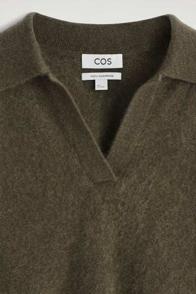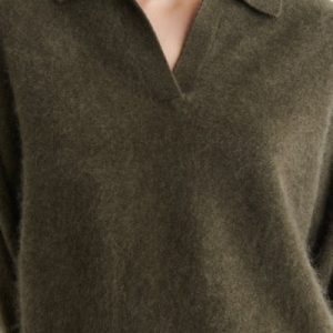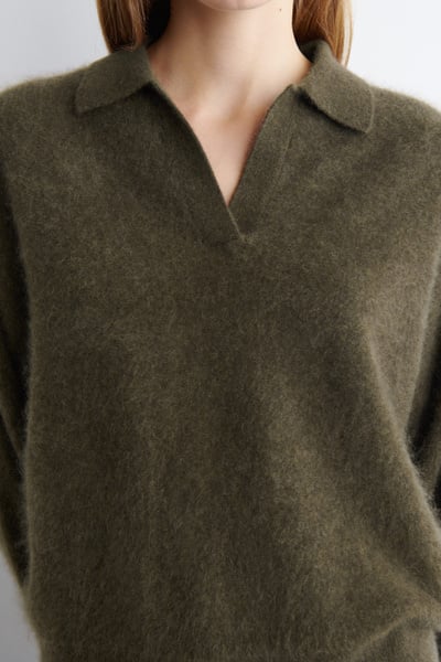 The classic polo is renewed with textural appeal for Pre-Fall 2025. It’s knitted from Good Cashmere Standard® cashmere that’s brushed for a soft, tactile hand feel and comes in an earthy khaki tone that will style effortlessly with the other pieces in your wardrobe. The open collar and batwing sleeves create an effortless shape.