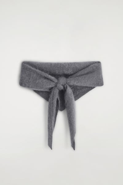 This modern triangle scarf is knitted from GCS cashmere that’s brushed for a soft, tactile hand feel and comes in a dark-gray tone that will style effortlessly with the other pieces in your wardrobe. Drape it around your shoulders or wear it as a headscarf.