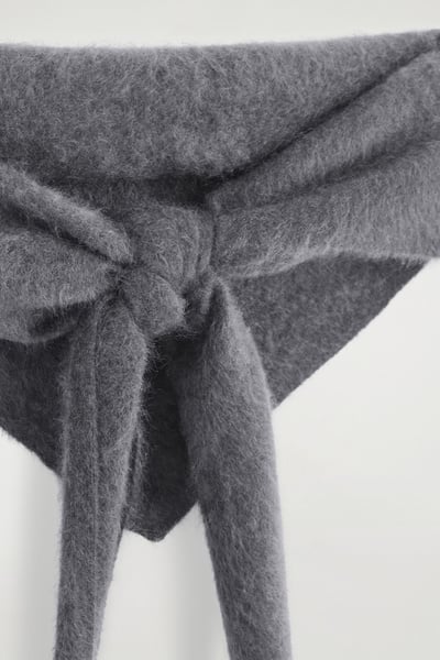 This modern triangle scarf is knitted from GCS cashmere that’s brushed for a soft, tactile hand feel and comes in a dark-gray tone that will style effortlessly with the other pieces in your wardrobe. Drape it around your shoulders or wear it as a headscarf.