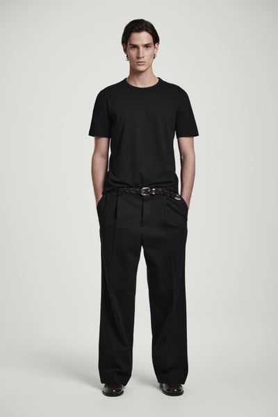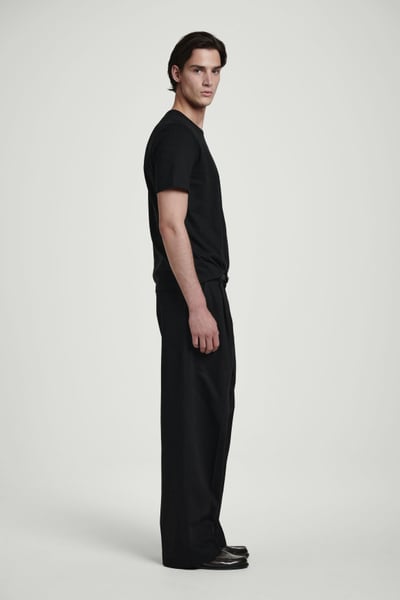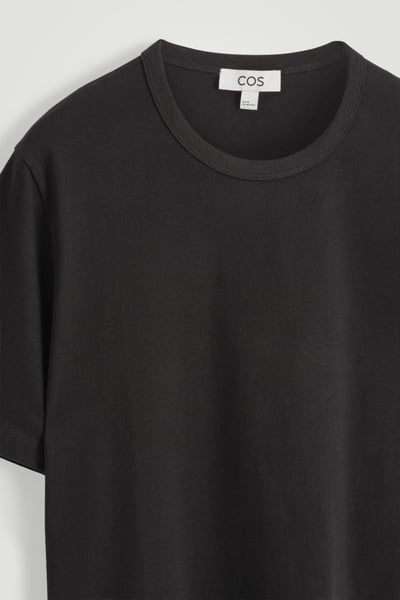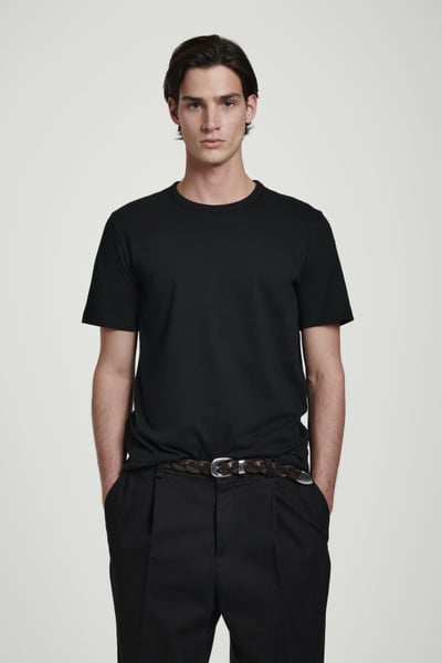 The brushed T-shirt has been a cornerstone of the menswear collection from day one. Offered in an enduring black tone, it’s crafted from 160gsm cotton jersey that has a luxuriously soft feel and cut in a classic shape that sits neatly with room for movement. The ribbed crew neck maintains its form after wear.