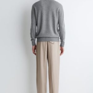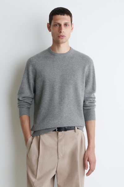 The COS menswear team have designed a wardrobe of premium wardrobe staples for Autumn Winter 2023. Offered in a gray hue, this sweater is crafted from traceable 100% cashmere that has been certified according to the Good Cashmere Standard and has a supremely soft hand feel. It’s cut in our most classic shape and has a crew neck, relaxed shoulders and neat ribbed trims.