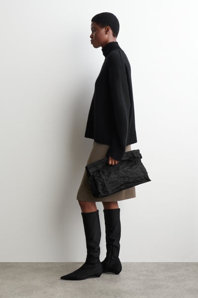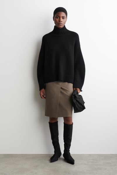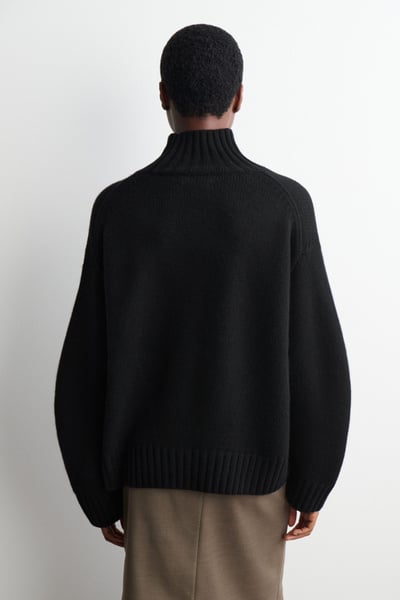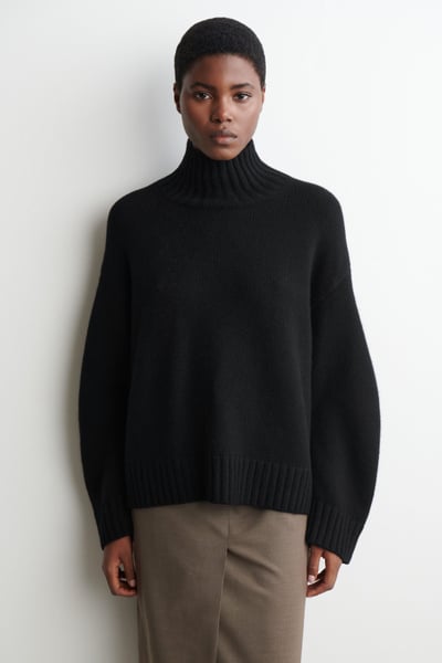 Timeless silhouettes and exceptional craftsmanship lead the COS cashmere collection. Knitted from exceptionally soft yarn, this refined jumper is cut in a relaxed shape and features a ribbed high neckline and curved sleeves.