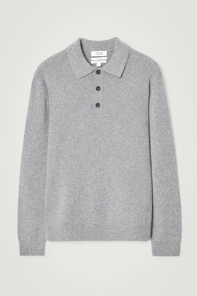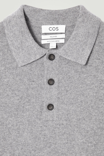This piece is a premium take on a wardrobe staple: the classic polo shirt. Offered in a mélange-gray hue, it’s expertly knitted from pure Good Cashmere Standard-certified cashmere that’s naturally warm and luxuriously soft. The buttoned half-placket offers versatile styling options, while the ribbed trims lend the relaxed shape some structure.