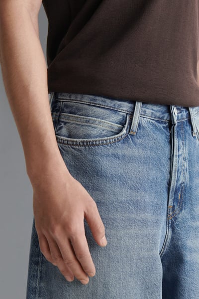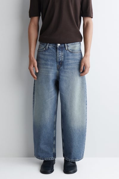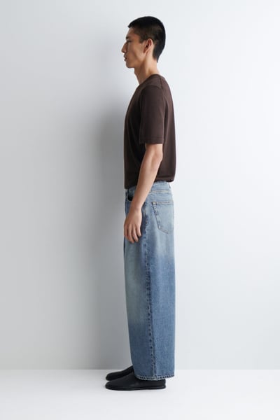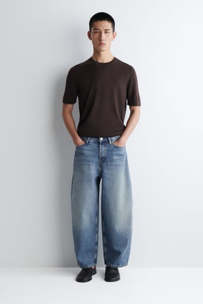 The Cask jeans are named for their distinctive barrel-leg shape. Cut to break at the ankle, they have a classic five-pocket design and are made from organic-cotton denim in a timeless blue wash. Style them with knitwear or a simple tee.