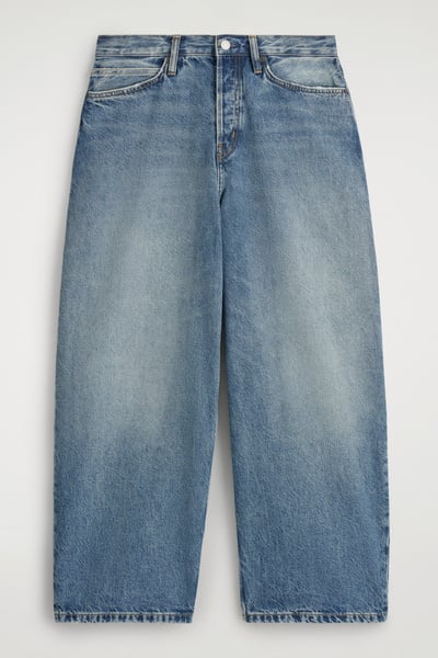 - Relaxed fit, mid rise, barrel leg, ankle length