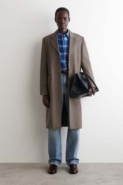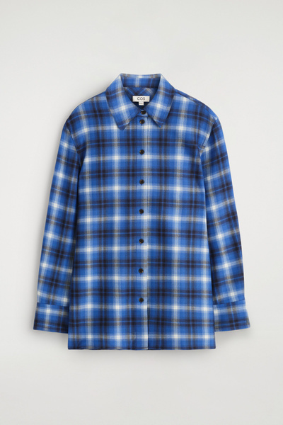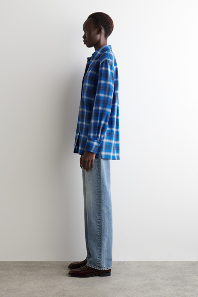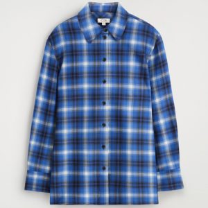 This season, the womenswear team propose a contemporary take on heritage codes. This modern shirt is crafted from ultra-soft wool-blend flannel and features a distinctive checked pattern that was designed in-house. Style it open with a tank top underneath.