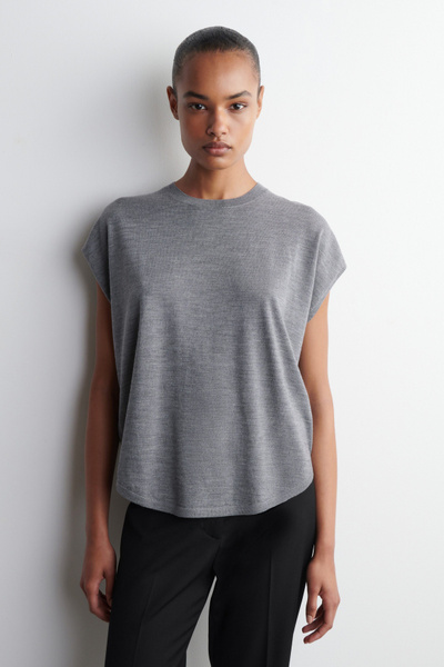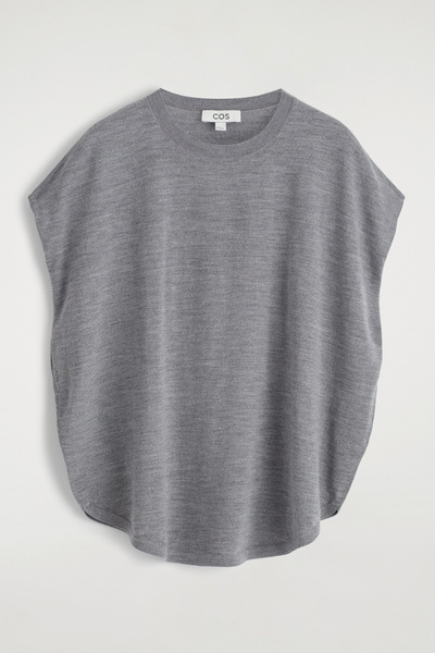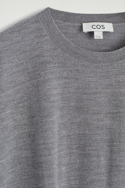 A cornerstone of the COS knitwear collection, extra fine merino is selected for its warmth and superior, featherweight feel. Crafted from RWS-certified yarn, this top has a softly rounded neckline and a circle-cut silhouette that emphasizes the relaxed shape. Style it with thematching cardigan.