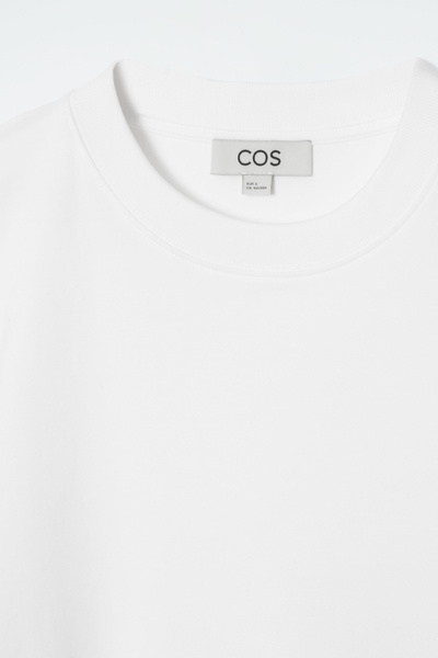 It’s hard to overstate the versatility of a classic white T-shirt. A cornerstone of the COS collection, this one is crafted from premium heavyweight organic-cotton jersey and shaped for a neat fit that has slight definition. Wear it with jeans, mini skirts or leather pants – just about anything goes.