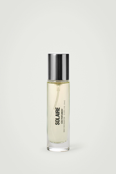 Solaire is a dynamic fusion of vibrancy and light, with a powerful blend of warming spices and ancestral resins that radiates brilliance. Made in Grasse, France, by experts in the art of scent, this Eau de Parfum opens with a lively and spicy mix of olibanum and styrax essence, combined with black pepper. At its core, amber notes and elemi essence shine, illuminated by a touch of musk. Warm benzoin notes are complemented by a halo of cedarwood and smoky cistus. Housed in a 15ml bottle, this version is perfectly sized for weekends away.
