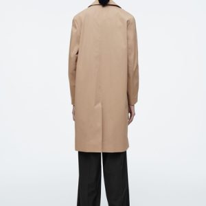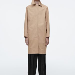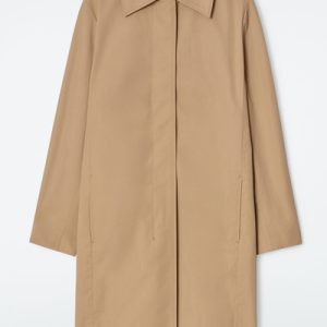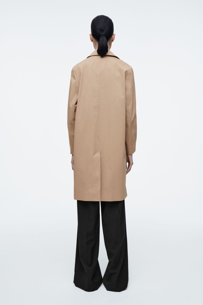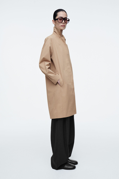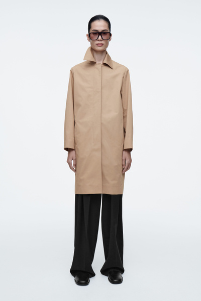 Offered in a neutral beige tone, this mid-length car coat is cut from crisp, lightweight crisp cotton, making it the perfect layering piece for those between-season days. It has a clean silhouette owing to the pointed collar, concealed placket and subtle side-seam pockets.