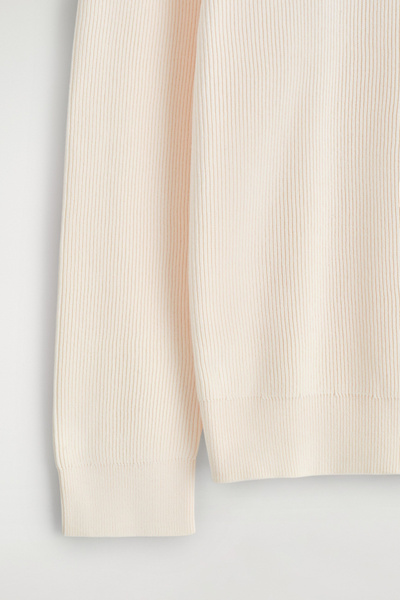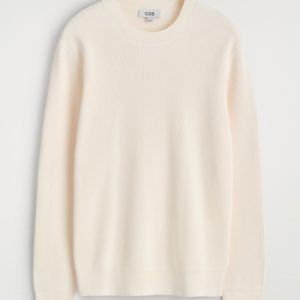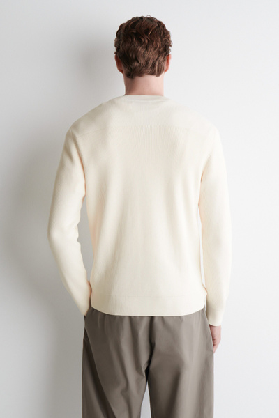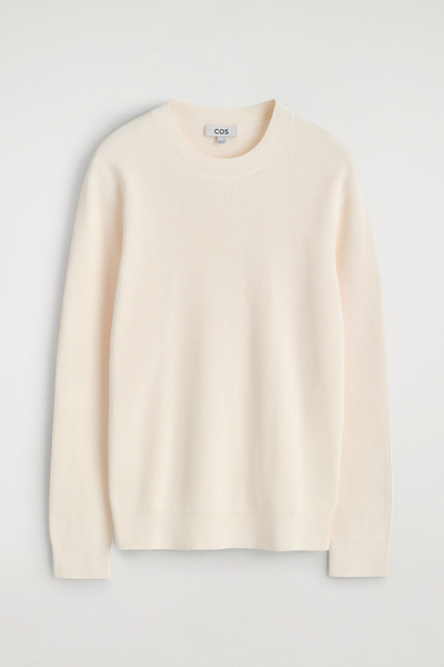 This timeless sweater will transition your wardrobe into the cooler seasons ahead. Offered in versatile off-white, it’s knitted from light yet tactile cotton and features a ribbed crew neck, cuffs, and hem. Style it with classic denim.
