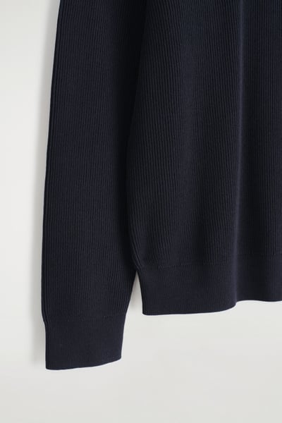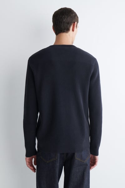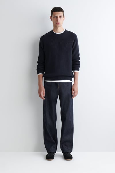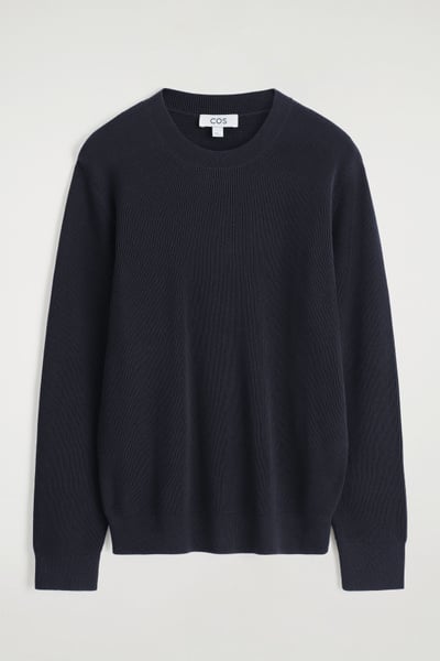 Introducing Wardrobe Essentials: a curation of COS signatures defined for the season. This timeless sweater will transition your style into the cooler seasons ahead. Offered in versatile navy, it’s knitted from light yet tactile cotton and features a ribbed crew neck, cuffs and hem. Pair it with classic denim.