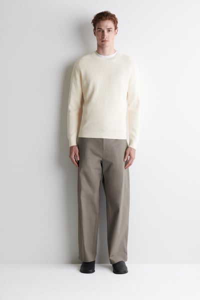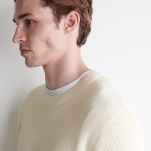 This timeless sweater will transition your wardrobe into the cooler seasons ahead. Offered in versatile off-white, it’s knitted from light yet tactile cotton and features a ribbed crew neck, cuffs, and hem. Style it with classic denim.