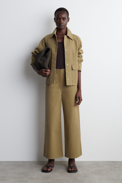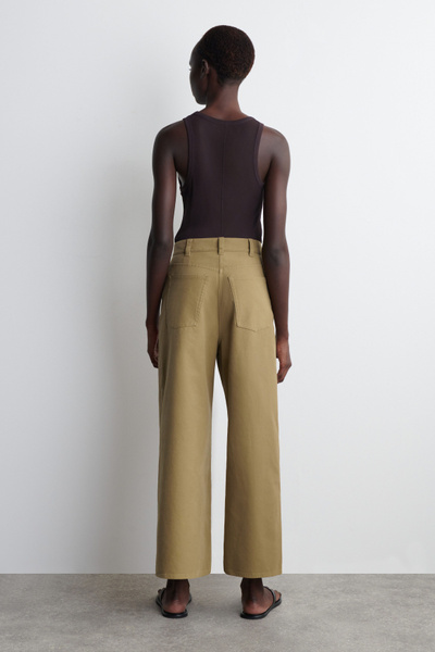 These modern pants will make a refined addition to the off-duty wardrobe. Offered in an earthy camel tone, they’re made from soft cotton twill and cut in a wide-leg silhouette that crops at the ankle.