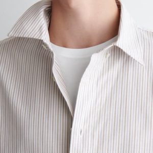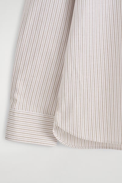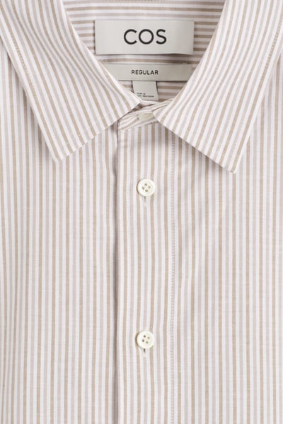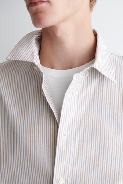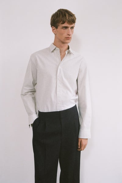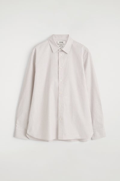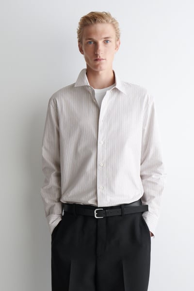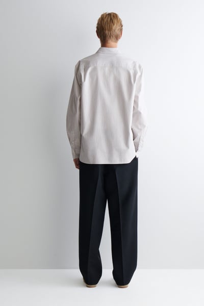 Introducing Wardrobe Essentials: a curation of COS signatures defined for the season. The classic Oxford shirt is a pillar of the COS tailoring collection. Crafted from premium Pima cotton, this one is rendered in a subtle striped pattern and features a pointed collar, curved hem and neatly buttoned cuffs. Style it open for a modern take on sartorial codes.