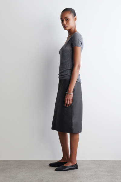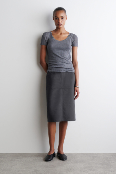 Simple yet impactful silhouettes lead the COS ready-to-wear collection. Offered in an enduring gray tone, this pencil skirt is made from smooth Pima cotton and shaped with subtle paneling and waisted darts. Style it with the matching top.