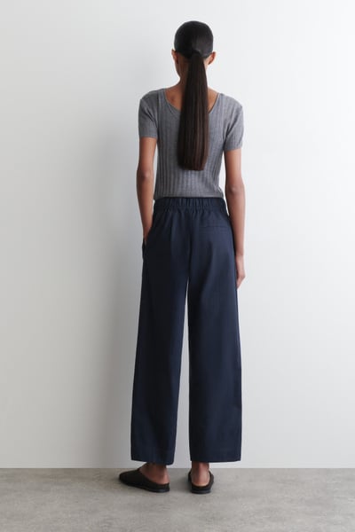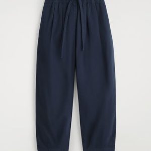 This effortless piece brings a sense of refinement to the casual wardrobe. They’re made from crisp, lightweight herringbone-cotton and are designed with a drawstring waistband, pleat detailing, and relaxed legs that taper at the ankles.