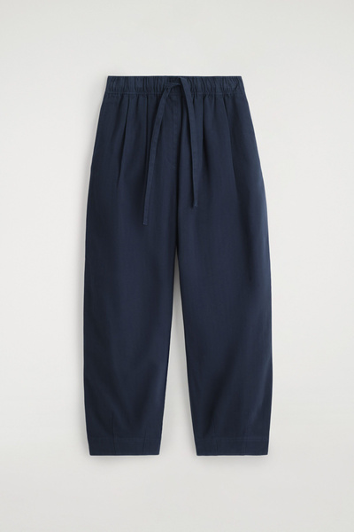 This effortless piece brings a sense of refinement to the casual wardrobe. They’re made from crisp, lightweight herringbone-cotton and are designed with a drawstring waistband, pleat detailing, and relaxed legs that taper at the ankles.