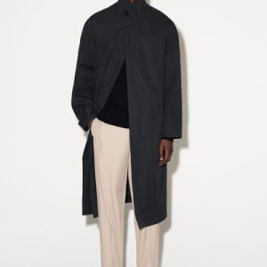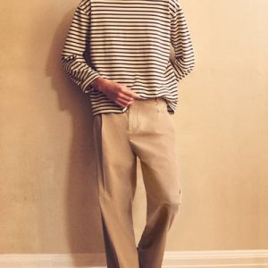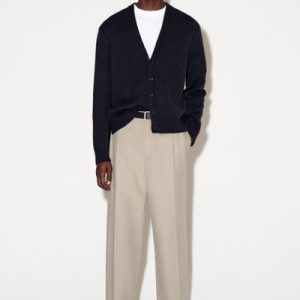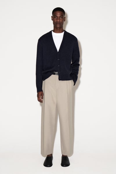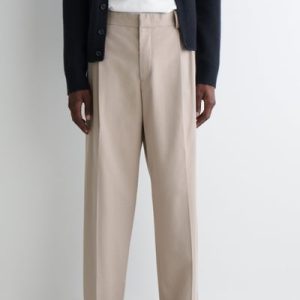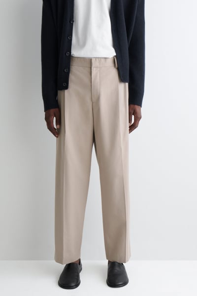 COTTON-TWILL STRAIGHT-LEG PLEATED PANTS