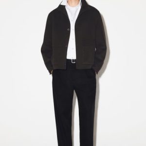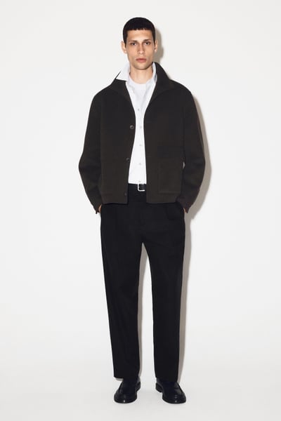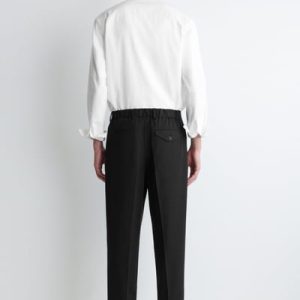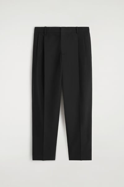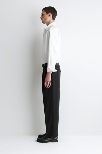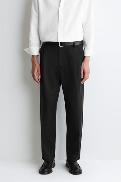 COTTON-TWILL STRAIGHT-LEG PLEATED PANTS