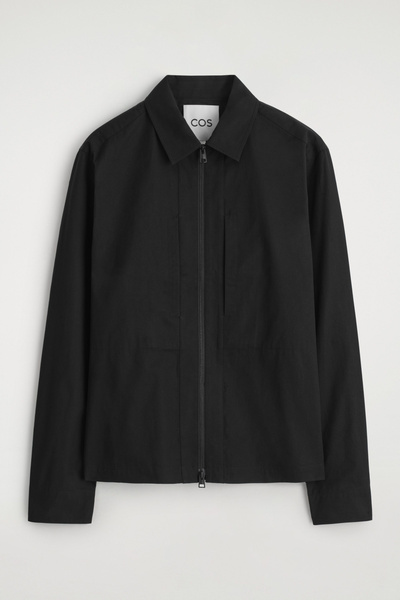 The menswear team renews the timeless overshirt with modern appeal. It’s crafted from lightweight cotton and designed with a pointed collar, zip closure, and practical zipped pockets on either side. The clean, classic shape allows it to be dressed up or down with ease.