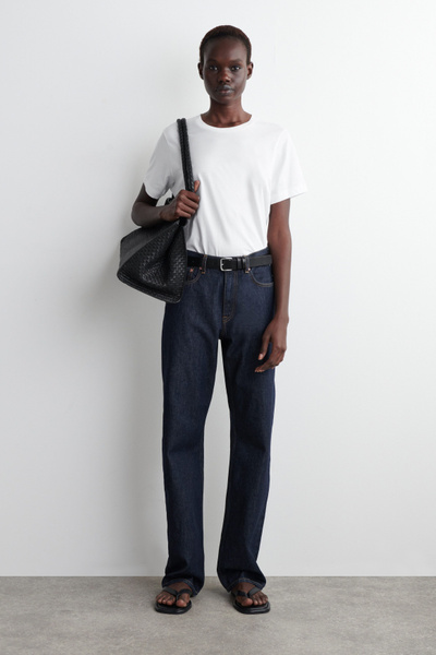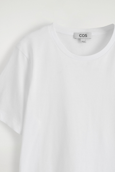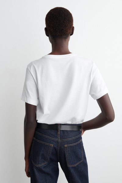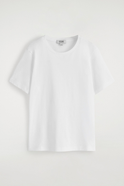 The COS womenswear team presents an everyday icon, perfected. This refined T-shirt is crafted from lightweight 150gsm cotton jersey, chosen for its comfort and unparalleled softness. It’s cut in a classic crew-neck shape and comes in a rich navy tone.