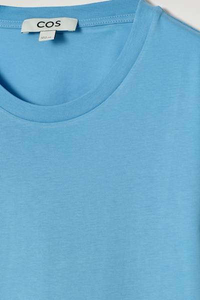 The COS womenswear team presents an everyday icon, perfected. This refined T-shirt is crafted from lightweight 150gsm cotton-jersey, chosen for its comfort and unparalleled softness. It’s cut in a classic crew-neck shape and comes in a serene blue tone.