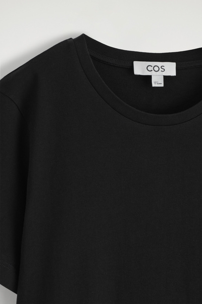 The COS womenswear team presents an everyday icon, perfected. This refined T-shirt is crafted from lightweight 150gsm cotton jersey, chosen for its comfort and unparalleled softness. It’s cut in a classic crew-neck shape and comes in a rich navy tone.