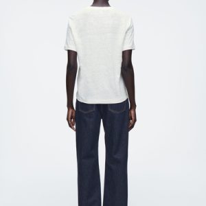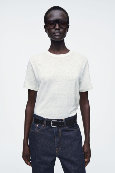 The COS womenswear team present an everyday icon, perfected. This refined T-shirt is crafted from 210gsm European Flax™ jersey, chosen for its natural breathability and soft handle. It’s cut in a classic crew-neck shape and comes in an enduring white tone.