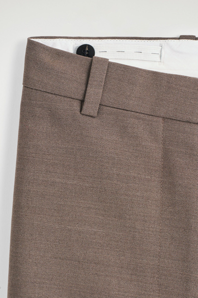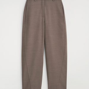 Introducing The Capsule Wardrobe: a seasonal evolution of permanent COS icons. Rendered in a rich mole tone, these merino wool-twill pants are cut in a modern barrel-leg shape and have forward-facing seams that accentuate the rounded silhouette. The adjustable tabs inside the waistband offer a perfected fit.