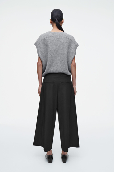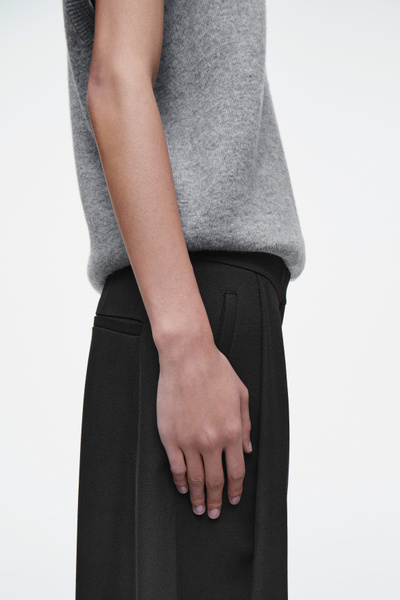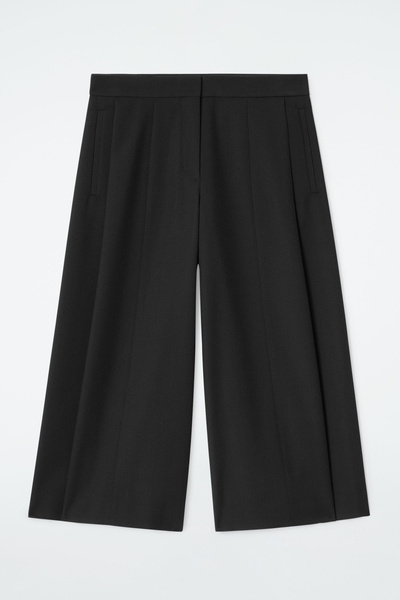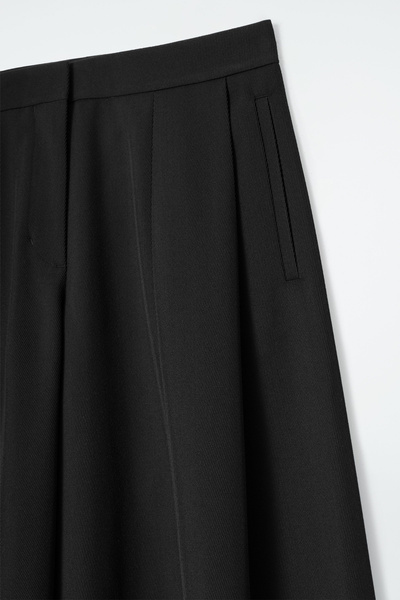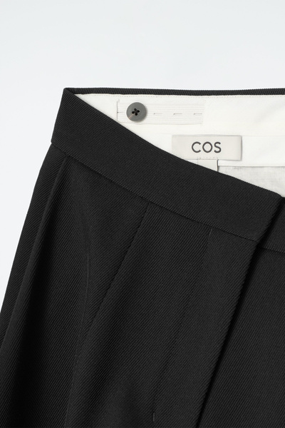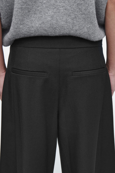 Rendered in an enduring black tone, these pants are crafted from wool-blend twill and cut with pleated, wide legs with cropped hems that highlight your shoes. The welt pockets nod to suiting codes, while the clean waistband adjusts to create a bespoke fit.