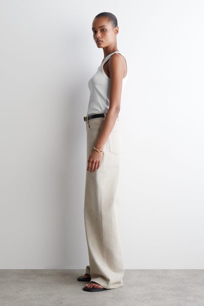 Introducing the Dial jeans: a wide-leg silhouette that channels the effortless appeal of ’90s denim. They’re made from 14oz organic- and recycled cotton that’s washed a modern beige tone and designed in an elongating, roomy shape.