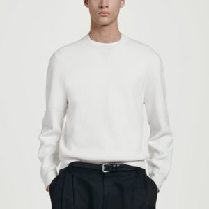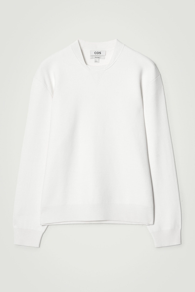DOUBLE-FACED BOMBER-NECK KNITTED SWEATER