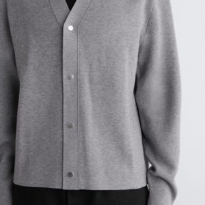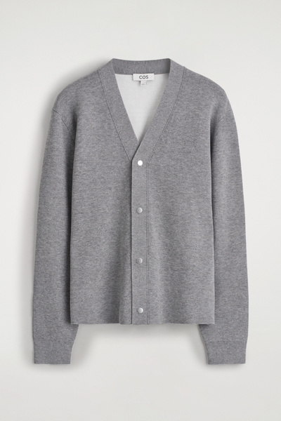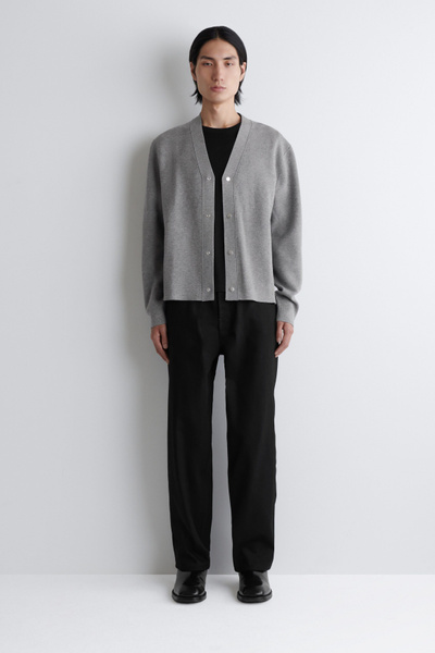 This season, the menswear team reimagines classic knitwear with modern design details. Cut in a relaxed shape, this V-neck cardigan is designed with silver-tone snap buttons and made from a double-faced knitted fabric for a premium finish inside and out.