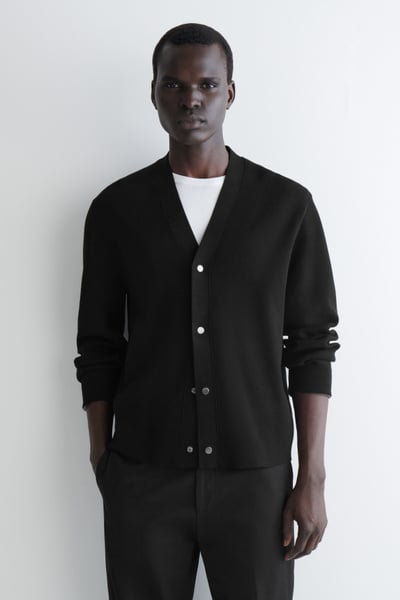 This season, the menswear team reimagines classic knitwear with modern design details. Cut in a relaxed shape, this V-neck cardigan is designed with silver-tone snap buttons and made from a double-faced knitted fabric for a premium finish inside and out.