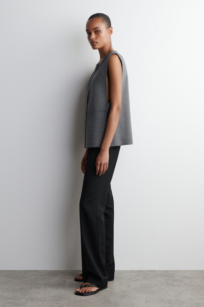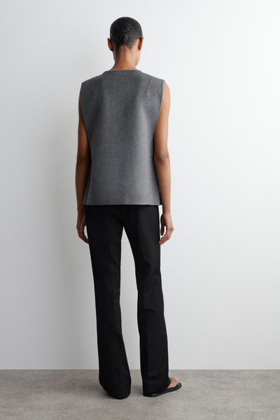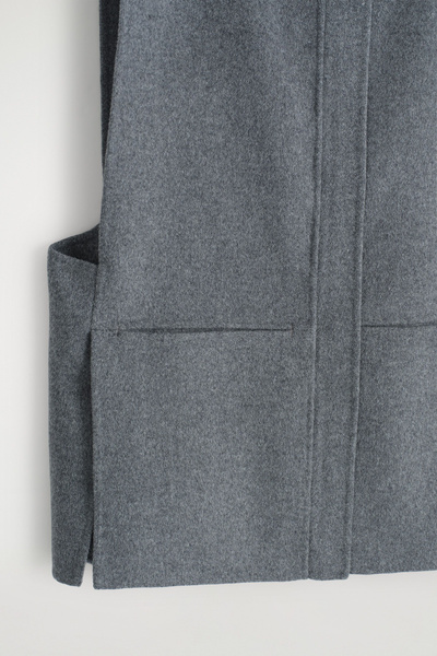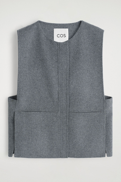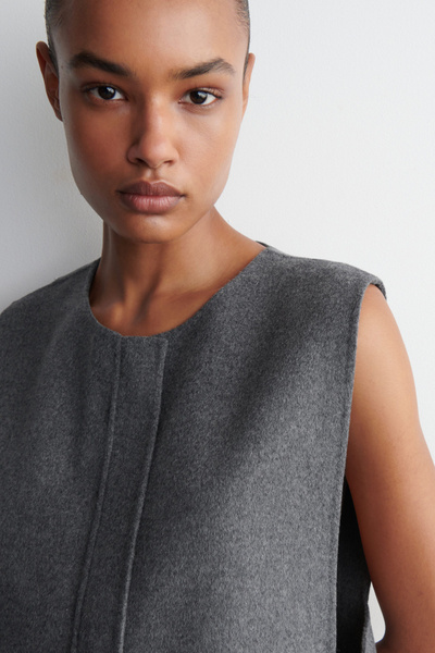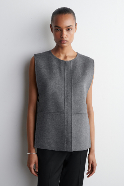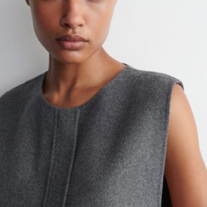 The womenswear team propose a dynamic take on layering for the upcoming season. This modern vest is crafted from an RWS wool blend that’s double-faced for a premium finish inside and out. It’s cut in a relaxed shape and designed with a concealed zipper, open sides, and discreet pockets.