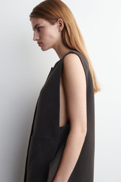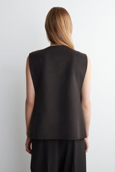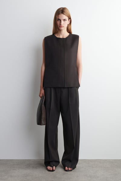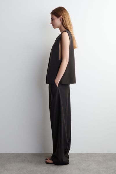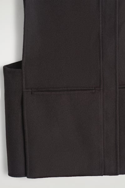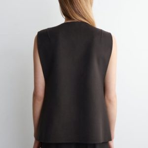 The womenswear team propose a dynamic take on layering for the upcoming season. This modern vest is crafted from an RWS wool blend that’s double faced for a premium finish inside and out. It’s cut in a relaxed shape and designed with a concealed zip, open sides and discreet pockets.