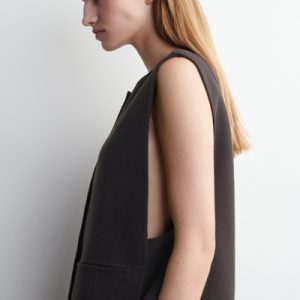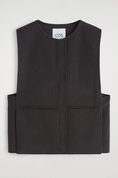 The womenswear team propose a dynamic take on layering for the upcoming season. This modern vest is crafted from an RWS wool blend that’s double faced for a premium finish inside and out. It’s cut in a relaxed shape and designed with a concealed zip, open sides and discreet pockets.