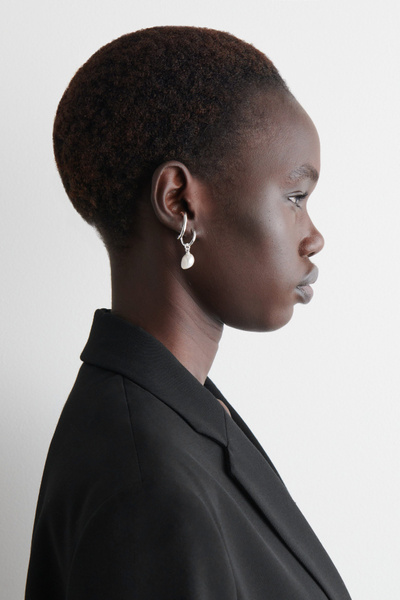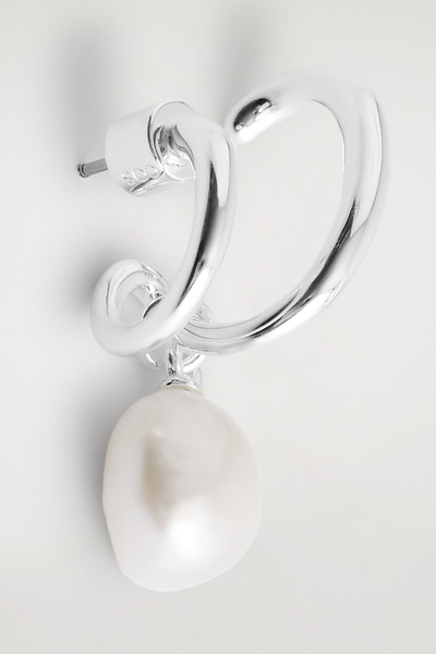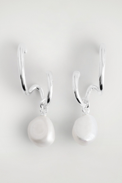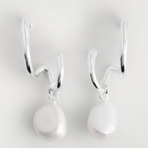 Sculptural jewelry has the transformative power to elevate any outfit. These modern earrings are crafted in an undulating shape with a pair of hoops that creates a stacked effect. Each piece is finished with a striking freshwater pearl.