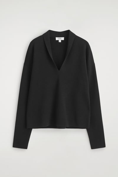 DRAPED MERINO WOOL V-NECK SWEATER