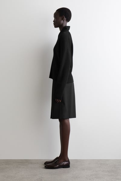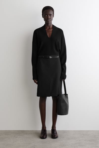 Introducing The Capsule Wardrobe: a seasonal evolution of permanent COS icons. Understated pieces like this sweater are charged with a renewed appeal. It’s crafted from ultra-soft merino wool in a subdued beige hue and features a sculptural V-neckline that folds gently in at the collar.
